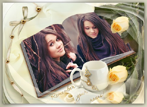 Фоторамка psd - Розы и книга
