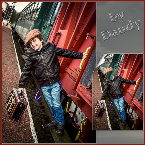 Шаблон для фотошопа - Мальчик на поезде с чемоданом