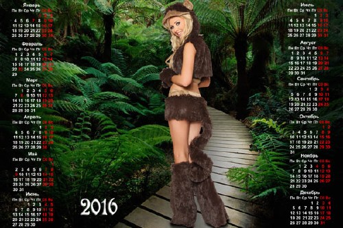 На 2016 год календарь - Девушка обезьянка